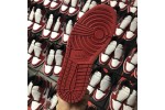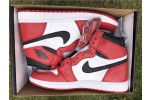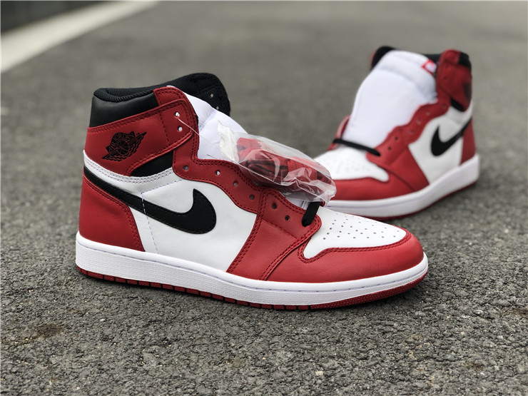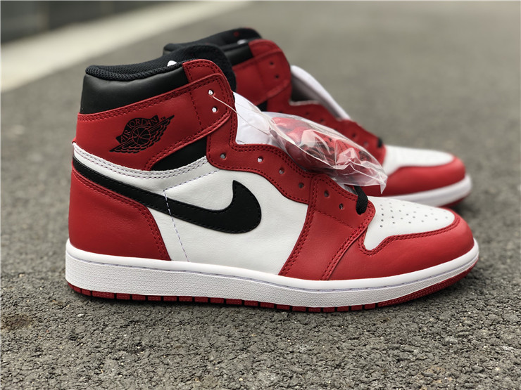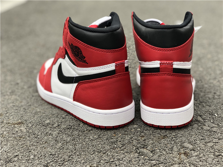 The Air Jordan 1 Retro High OG 'Chicago' 2015 colorway was designed to avoid Jordan's $5,000-per game fines from the NBA after the original black and red colorway was banned. The 'Chicago' was first retroed in 1994 and stayed true to the 1985 design. Further retros were released in 2013 with small changes to the design, and again in 2015 with the original branding details: the Nike Air logo on the tongue and the original clean heel without the Jumpman logo.