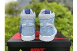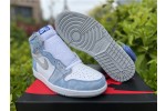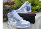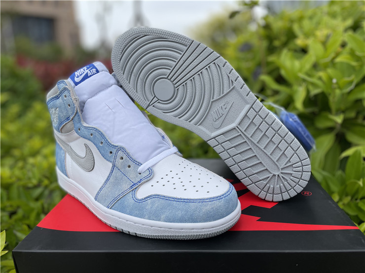 The upper of the Air Jordan 1 Hyper Royal is constructed with white leather and distressed Hyper Royal suede overlays while the Swoosh and panels around the ankle are made with a Light Smoke Grey Durabuck. Consistent with Jordan 1s of the past, a classic white “Wings” logo appears on the lateral ankle. A blue woven Nike Air label stitched on the tongue, a white midsole, and a Light Smoke Grey outsole add the finishing touches to this retro design.