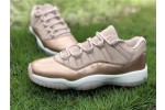 The Air Jordan 11 Low ‘Rose Gold’ released in April 2018 as a women’s-exclusive colorway. While the low-top is missing the AJ11’s signature patent-leather paneling, its premium look and feel are maintained by the addition of Metallic Red Bronze on the mudguard. A similar finish, albeit without the metallic sheen, covers the rest of the shoe’s matte leather upper as well as the translucent rubber outsole underfoot.
