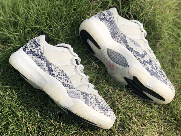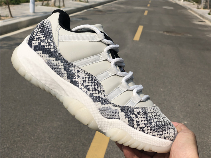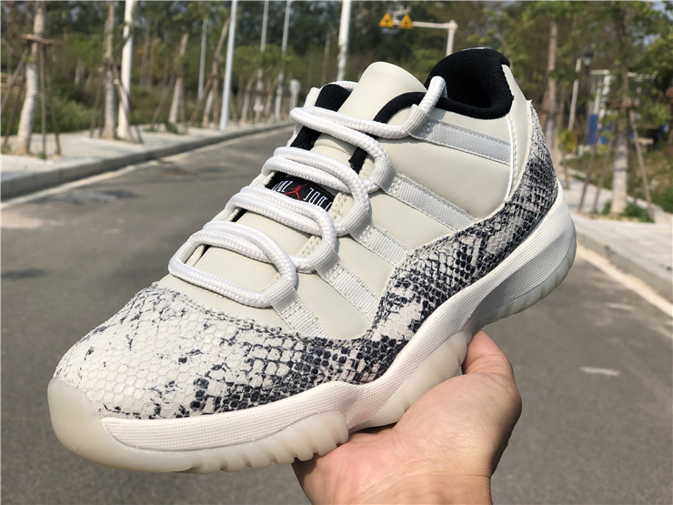 The Air Jordan 11 Retro Low's iconic identity was founded when Michael Jordan returned to the game in 1995. Surfacing in June 2019, this 'Light Bone Snakeskin' variant reaffirms the classic's allure with a contemporary snakeskin print on the leather upper's mudguard. Rope laces winding through the lateral webbing customize fit. Signature Jumpman insignias are positioned on the tongue and heel. A translucent rubber outsole and carbon fiber plate form the base.