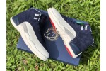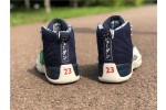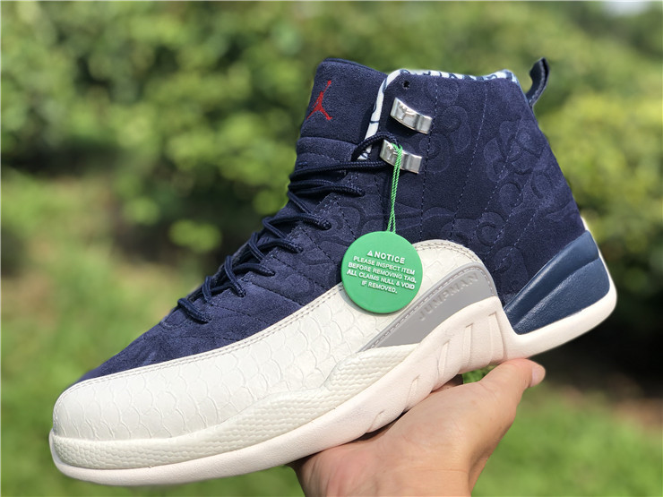 Michael Jordan famously included a ‘Love of the Game’ clause in his contract to ensure that he could play basketball in the offseason. The stipulation saw him spend summers traveling the globe to promote the game in foreign countries through basketball clinics. Jordan Brand saluted these efforts with the International Flight Collection, a trio of shoes representing notable camps he took part in. This Air Jordan 12 colorway, honoring a 1996 trip to Tokyo, features a kimono-style print on the suede upper and a koi fish scale pattern on the mudguard. The characters on the heel translate to ‘Air Jordan.’